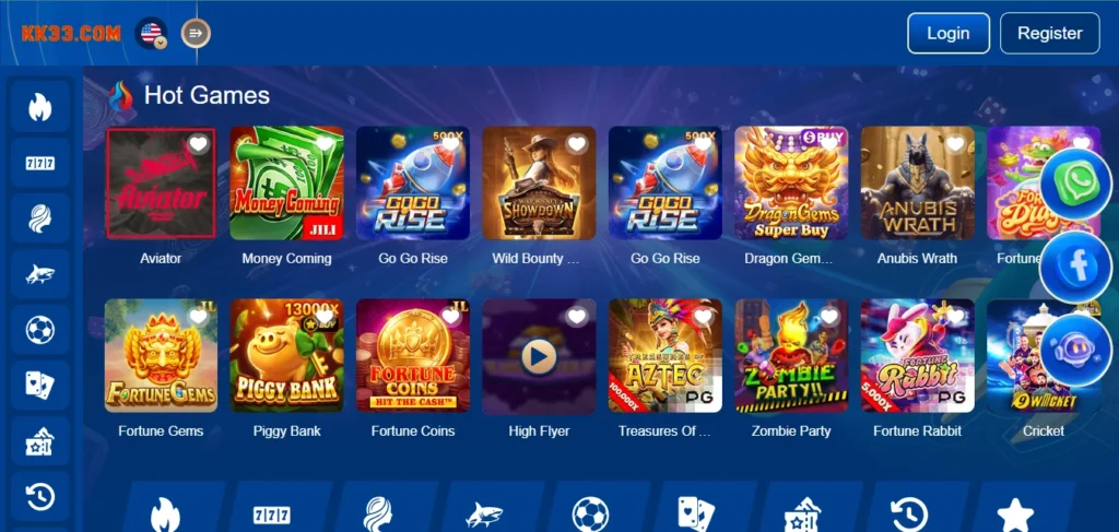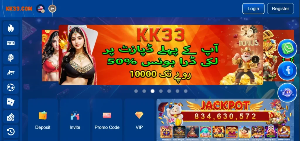 KK33 Game is a leading online gaming app in Pakistan that you can make money online by playing different exciting games. This gaming app gives over 50 different games, including card games like Teen Patti, Poker, and Rummy, as well as slot games, live casino, fishing games, lottery games, and more. It is a full casino experience on your mobile device.
